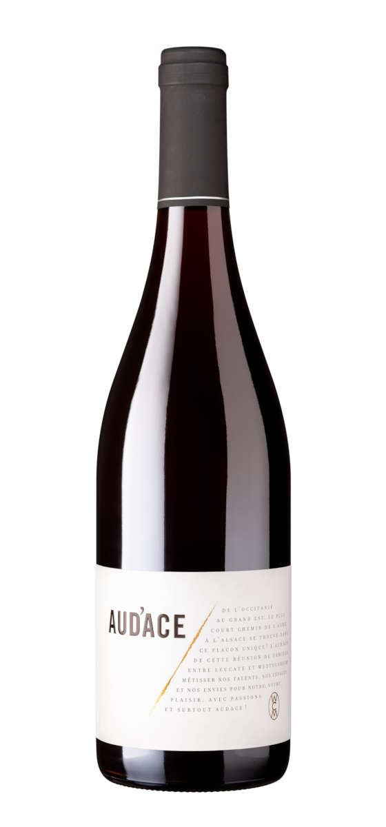 Voilà de quoi vous sortir des sentiers battus. Pierre et Mireille Mann du Mas des Caprices et enfants de vignerons alsaciens nous proposent un Vin de France qui est l'assemblage de grenache languedocien et de pinot noir alsacien avec une pointe de lladoner pelut. Il fallait le faire d'où l'Aud'Ace . Un vin de caractère, porté par une jolie trame de fruits et rafraîchit par des notes réglissées et minérales. A boire dans sa jeunesse.